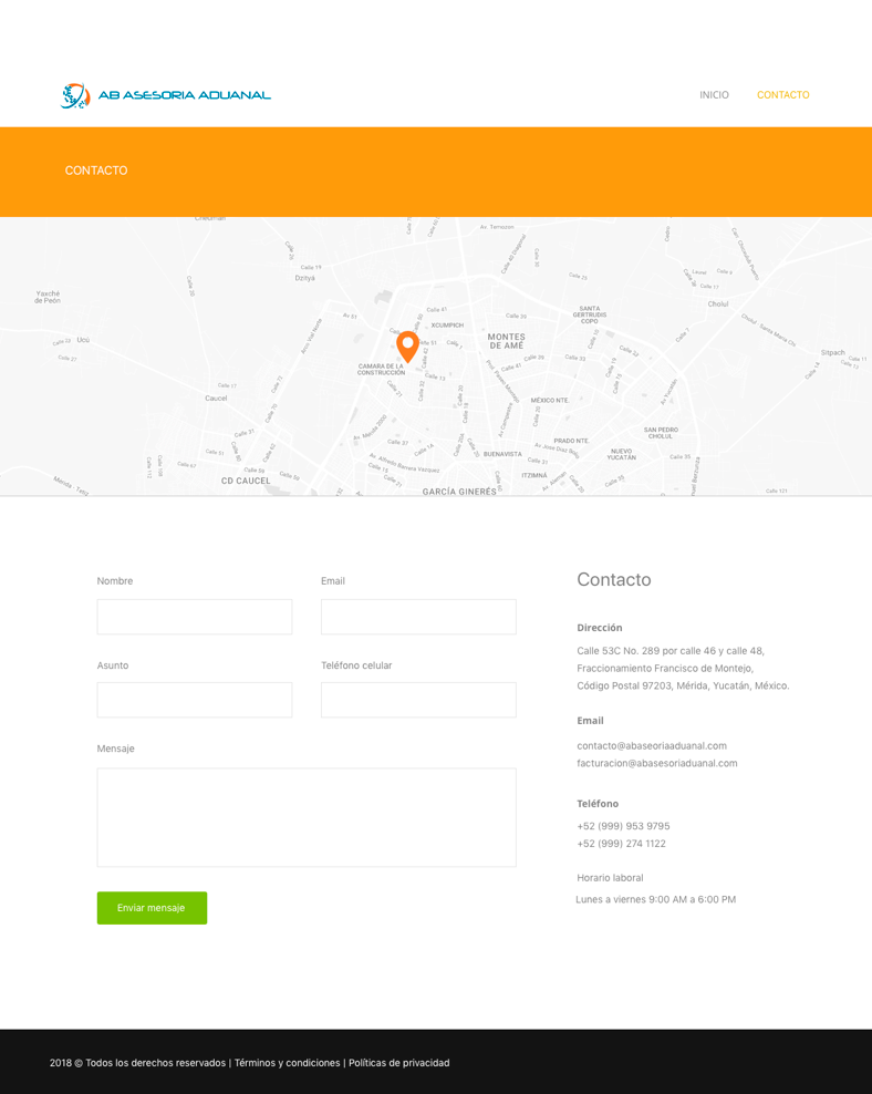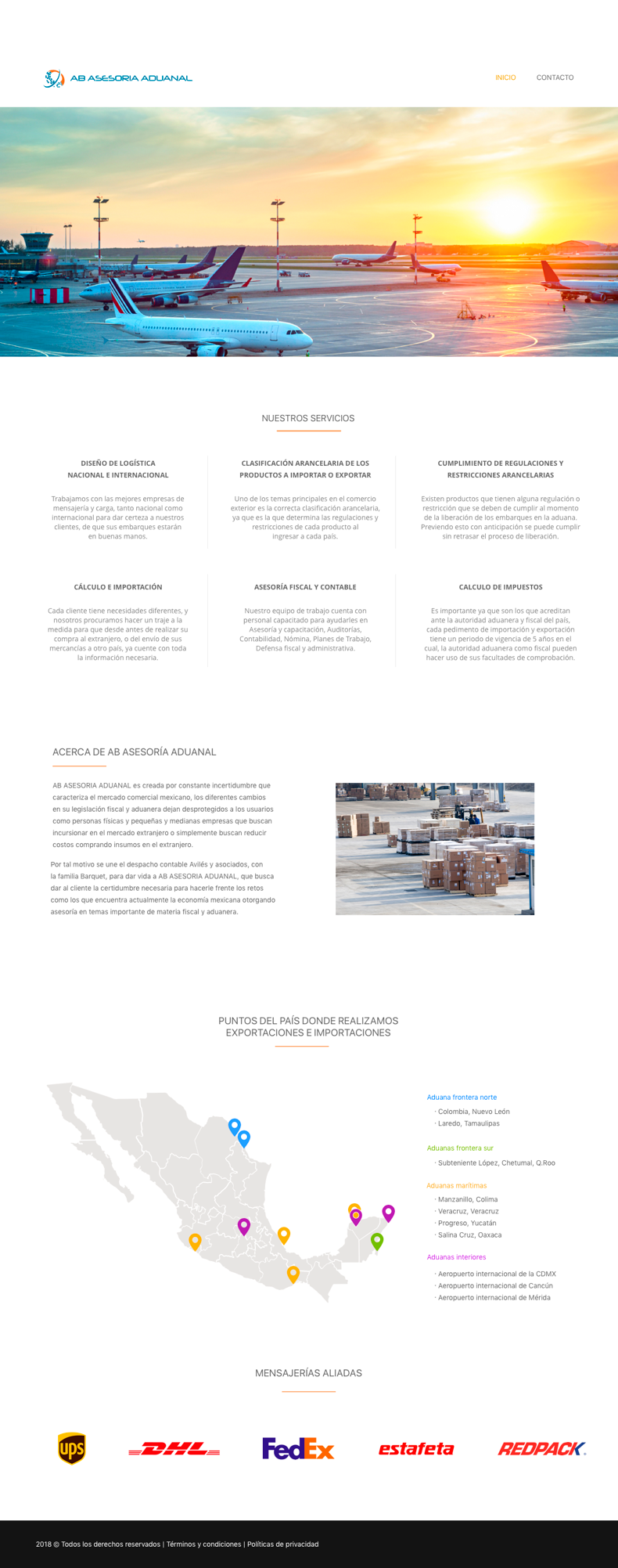 Diseño web para AB Asesoría Aduanal, empresa especializada en legislación fiscal y aduanera para empresas pequeñas o medianas que buscan incursionar en el mercado extranjero o simplemente buscan reducir costos comprando insumos en el extranjero.