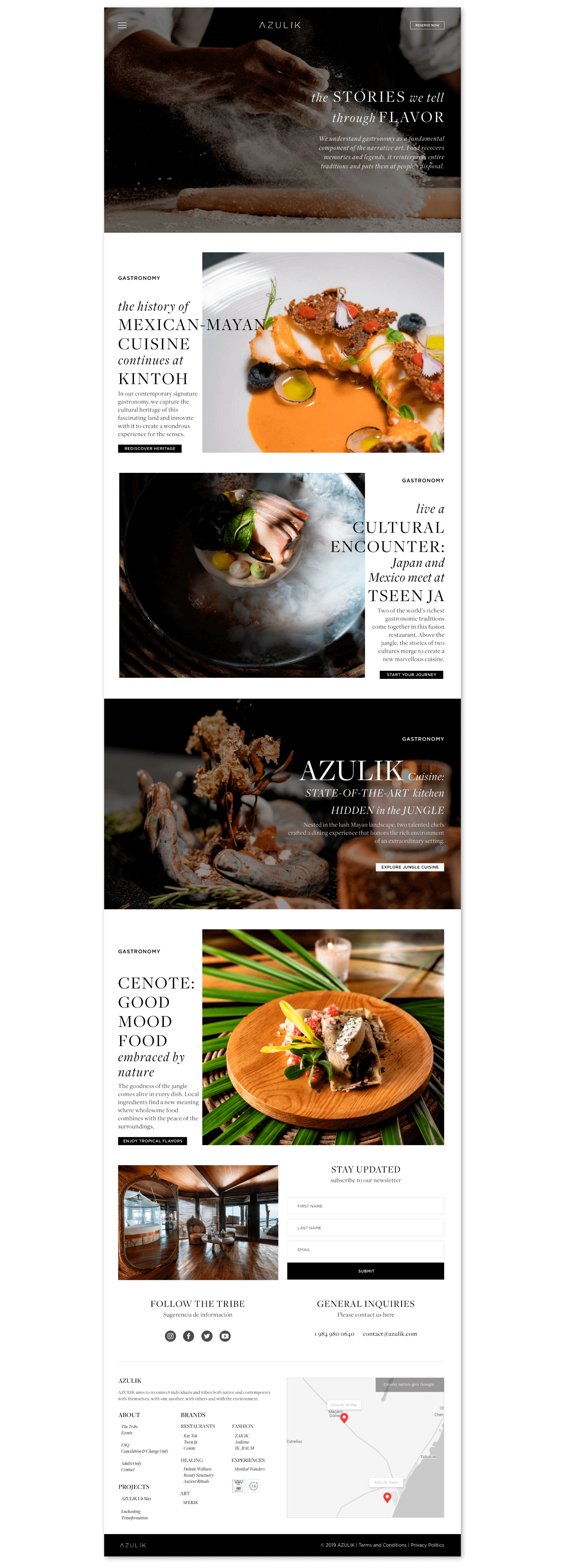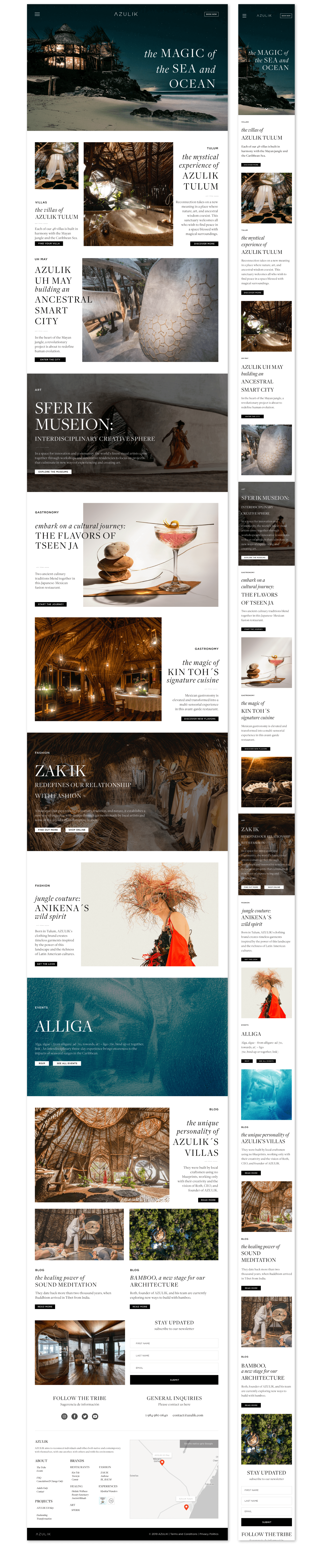 Diseño web del Hotel AZULIK ubicado en Tulum, Quintana Roo. El trabajo estuvo realizado en colaboración con el director creativo y el equipo de Marketing.